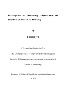 Wu, Yuyang (2023) Investigation of processing polyurethane via reactive extrusion 3D printing. PhD thesis, University of Nottingham.