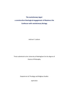 The evolutionary logoi: a constructive theological engagement of Maximus the Confessor with evolutionary biologyTools Jackson, Andrew P. (2023) The evolutionary logoi: a constructive theological engagement of Maximus the Confessor with evolutionary biology. PhD thesis, University of Nottingham.