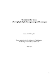 Ugandan crater lakes: inferring hydrological change using stable isotopesTools Hunt, Laura Hazel (2023) Ugandan crater lakes: inferring hydrological change using stable isotopes. PhD thesis, University of Nottingham.