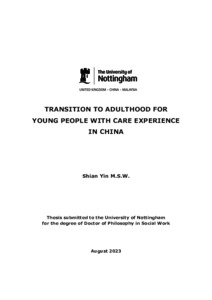 YIN, SHIAN (2023) TRANSITION TO ADULTHOOD FOR YOUNG PEOPLE WITH CARE EXPERIENCE IN CHINA. PhD thesis, University of Nottingham.