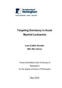 Targeting dormancy in acute myeloid leukaemiaTools Doolan, Lara (2023) Targeting dormancy in acute myeloid leukaemia. PhD thesis, University of Nottingham.