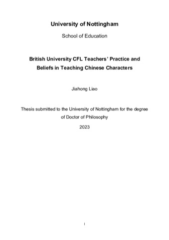 British University CFL Teachers’ Practice and Beliefs in Teaching Chinese CharactersTools Liao, Jiahong (2023) British University CFL Teachers’ Practice and Beliefs in Teaching Chinese Characters. PhD thesis, University of Nottingham.