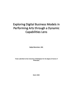 Manninen, Kadja (2024) Exploring digital business models in performing arts through a dynamic capabilities lens. PhD thesis, University of Nottingham.