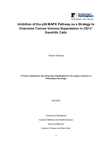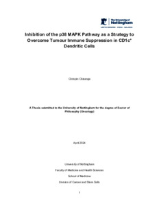 Inhibition of the p38 MAPK pathway as a strategy to overcome tumour immune suppression in CD1c+ dendritic cells.