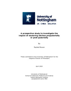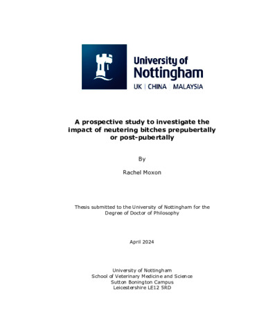 A prospective study to investigate the impact of neutering bitches prepubertally or post-pubertally.