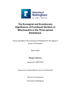 The Ecological and Evolutionary Significance of Functional Variation in Mitochondria in the Three-spined Stickleback.