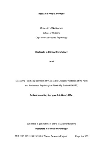 Agrippa, Safia (2025) Measuring psychological flexibility across the lifespan: validation of the Adult and Adolescent Psychological FlexibiliTy Scale (ADAPTS). DClinPsy thesis, University of Nottingham.
