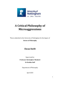 Swift, Ewan (2025) A critical philosophy of microaggressions. PhD thesis, University of Nottingham.