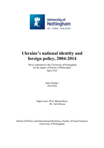 Ukraine’s national identity and foreign policy, 2004-2014.