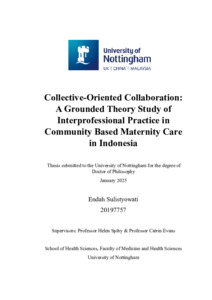 Collective-oriented collaboration: a grounded theory study of interprofessional practice in community based maternity care in IndonesiaTools Sulistyowati, Endah (2025) Collective-oriented collaboration: a grounded theory study of interprofessional practice in community based maternity care in Indonesia. PhD thesis, University of Nottingham.