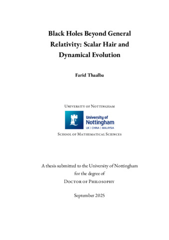 Black holes beyond general relativity: scalar hair and dynamical evolutionTools Thaalba, Farid (2025) Black holes beyond general relativity: scalar hair and dynamical evolution. PhD thesis, University of Nottingham.