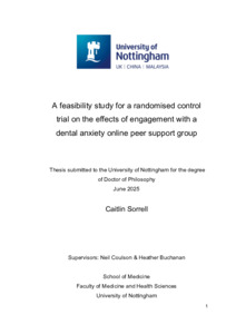 Sorrell, Caitlin (2025) A feasibility study for a randomised control trial on the effects of engagement with a dental anxiety online peer support group. PhD thesis, University of Nottingham.