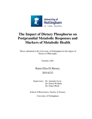 Phosphorus plays a crucial role in energy metabolism, yet its impact on postprandial metabolic responses remains insufficiently explored. This dissertation investigates the relationship between dietary phosphorus and postprandial glycemia, energy expenditure, and metabolic health through a systematic review, two controlled clinical trials, and a cross-sectional analysis of the UK National Diet and Nutrition Survey (NDNS) data.